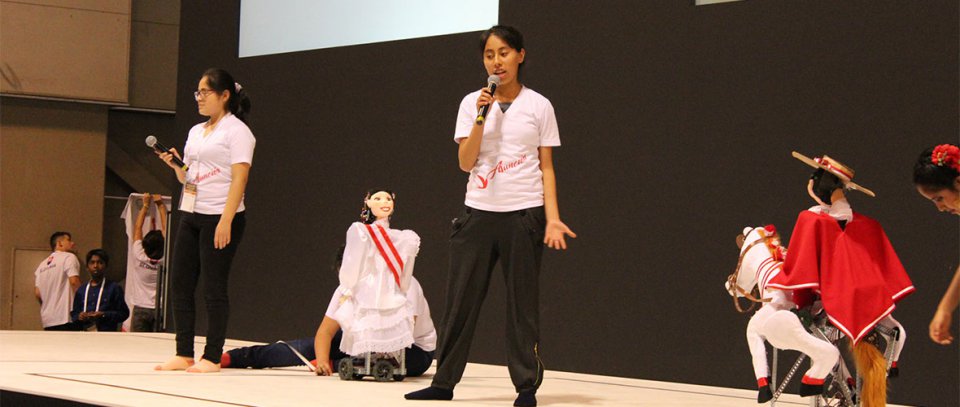 オンステージ ジュニアリーグのみに設定されていて、発想力や芸術性が特に問われるのが「オンステージ」です。ルールによる制限が少ないことも大きな特徴です。ロボットの台数や大きさにとらわれず、ロボットのメカニズムの探求したり、ロボットと人間のコラボレーションを目指すなど、自由な発想で競うことが最大の魅力です。 オンステージの審査方法も独特で、ロボット(と人間)が演技をするパフォーマンス審査とともに、面接方式のインタビュー審査も行われます。出場する子供たちはインタビュー審査を通してプレゼンテーションや説明する能力、工夫でも競います。審査の基準は「プログラミング」「構造・構成」「センサーの使用」「振付け」「衣装」「エンターテイメント性」6つのカテゴリーに分かれています。今年から「プライマリ」(14歳以下)と「セカンダリ」(19歳以下)の年齢区分が設けられます。 ロボットと共同したアート表現の要素があるため、家族みんなで観覧するのにも楽しい競技です。